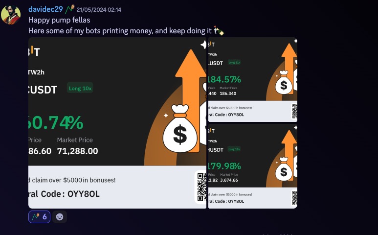 Creating a Bybit account using our sponsored affiliate link benefits both of us. You gain access to one of the best crypto trading platforms with competitive fees and exclusive welcome bonuses. Meanwhile, the commission we receive from Bybit supports our team of developers and staff, enabling us to maintain and improve DaviddTech Bots. This approach also helps us build a dedicated community of genuine traders, reducing spam and enhancing the overall experience for everyone.